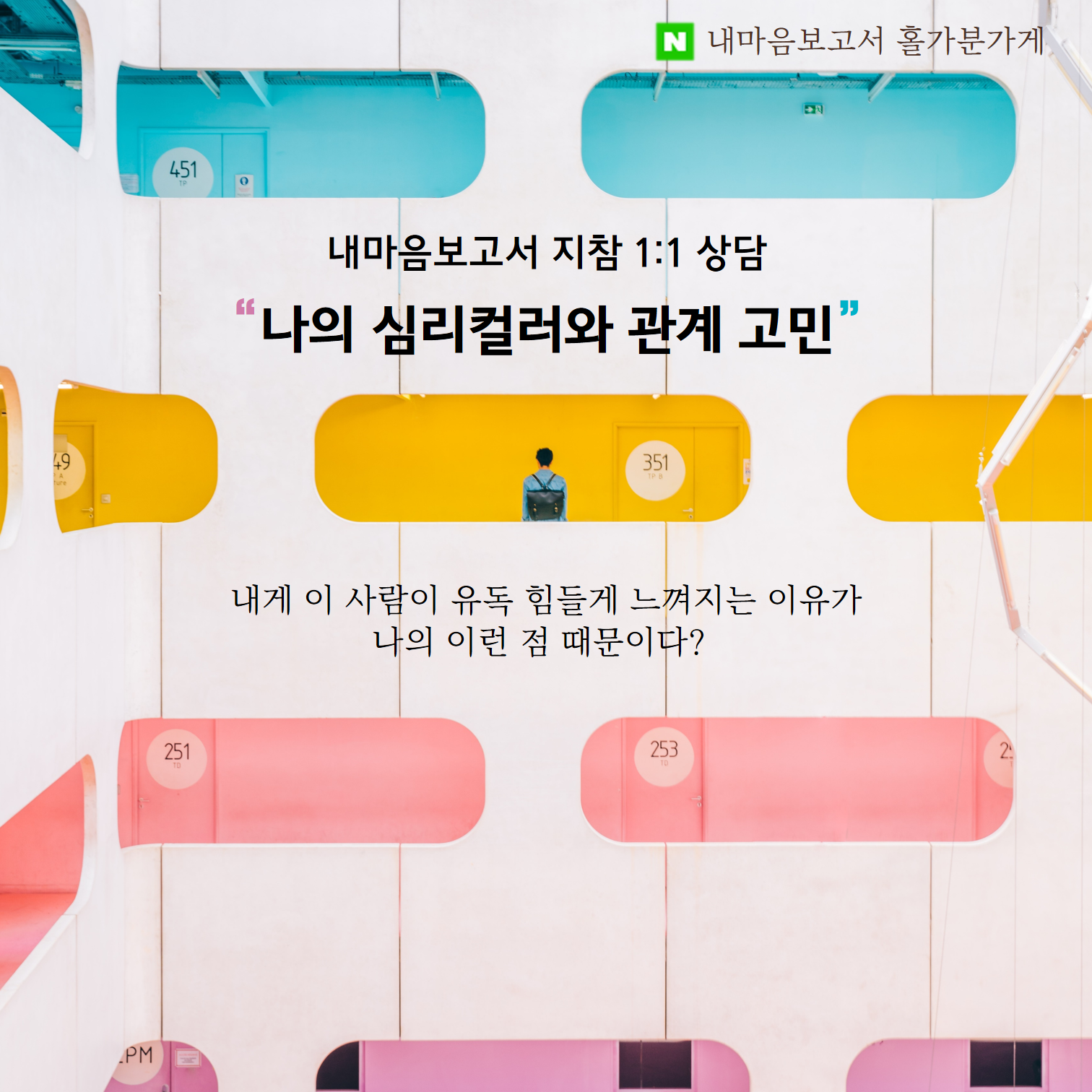 ㆍ내마음보고서 지참 1:1 상담 [나의 심리컬러와 관계 고민] https://smartstore.naver.com/holgaboon/products/4452263634