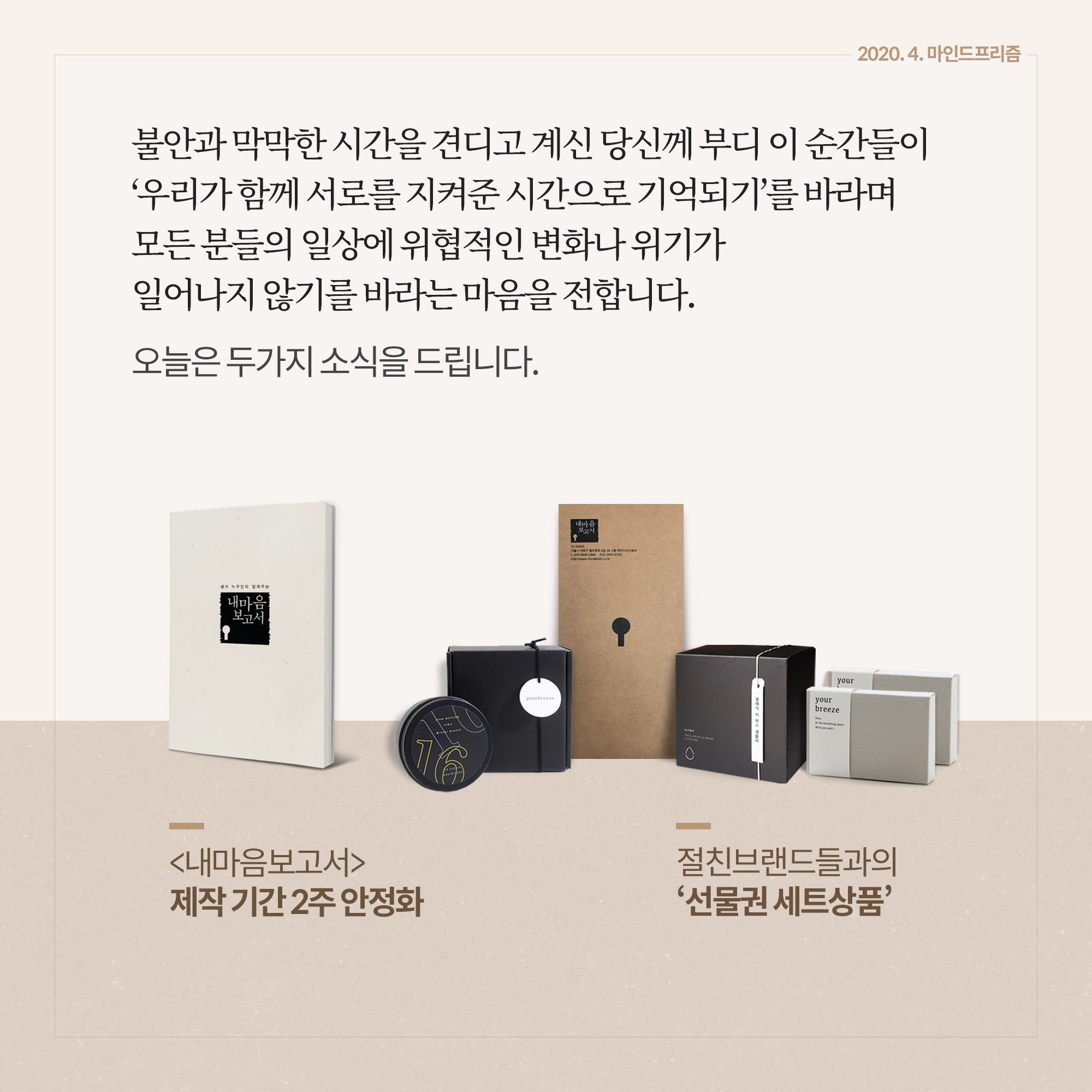 둘, <내마음보고서>와 향기로운 우정을 이어가고 있는 절친브랜드들과의 ‘선물권 세트상품’을다양하게 준비했습니다.