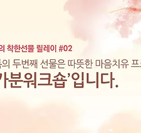 [이벤트] 힐링톡의 착한선물 릴레이#2 - 홀가분워크숍 참가권 선물 ‘홀가분워크숍 편’이란? 사람이라면 누구나, 살다보면 반복적으로 경험하는 감정적인 어려움, 곤란함이 있기 마련입니다. 홀가분워크숍 ‘나’편은 이런 반복의 근원을 찾아가는 감정치유 워크숍입니다. '홀가분워크숍 편' 소개 바로가기 '홀가분워크숍 편' 참여 현장보기 이벤트 참여 방법 안내 1. 본 게시물에 댓글로 ‘홀가분’한 경험을, 구체적 상황을 제시하여 5줄 이내로 남기면 됩니다. 2. 등록한 댓글은 이벤트 후기에 내용이 공개됩니다. 더보기 이전 1 ··· 1009 1010 1011 1012 1013 1014 1015 ··· 1128 다음