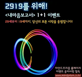 시작하는 그대를 위한, 내마음보고서 1+1 이벤트! 2919를 위해! 1+1 이벤트 시작하는 그대를 위한 마음 준비 이벤트! 개강 전 날, 면접 전 날, 입사 전 날.. 입을 옷도 준비했고, 거울을 보며 미소도 지어보고, 말을 건네보기도 하고… ‘..빠트린 건 없겠지?’ 다시 살펴보지만 달뜬 마음 감출 길 없어 쉬이 잠들지 못하겠지요. 시작 전 날, 가장 중요한 것은 늘 설레고 긴장되는 내 마음 달래주는 것이지요. 마음을 준비하는 그 시간, 그 날들을 보내고 있는 여러분을 위해 마인드프리즘이 준비한 특별한 이벤트! 지금 마인드프리즘 홈페이지에서 바로 확인해보세요 >>>www.mindprism.co.kr ** 마인드프리즘 홈페이지의 이벤트 공지사항을 꼭 확인하세요! 더보기 이전 1 ··· 241 242 243 244 245 246 247 ··· 1128 다음