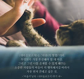 지금, 나에게 필요한 것은? "지인들에게 한 가지 부탁을 했다. 너의 는 어떤 의미였니? => 후배J : 는 롤러코스터예요. 하기 전엔(타기 전엔) 기대도 되고 무서웠거든요. 근데 막상 하고 나니까 엄청 상쾌한 거야. => 선배E : 는 ‘영양제’다. 내마음의 빠진 부분을 채워줘서 더 건강한 나로 살아가게 했으니까. => 후배G : 는 ‘빨랫집게’다. 젖은 마음을 높이 들추어서 오롯이 마주하게 하고, 그것이 하얗고 뽀송하게 말라가는 과정을 목격하게 했 어요. => 나에겐 : 는 ‘사랑(의 방법)’이다. 무엇보다 가장 우선해야 할 내마음과 소중한 사람들의 마음이 더 행복해지길 바라서 가장 먼저 건네고 싶은 것. . .. ‘마음씨’ 후기 中 (https://goo.gl/SpK9af) -----------------------------.. 더보기 이전 1 ··· 255 256 257 258 259 260 261 ··· 1128 다음