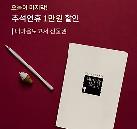 오늘이 마지막, 추석연휴 1만원 할인! 마음까지 밝아지는 추석선물, 1만원 할인! 로 나와 나의 소중한 사람에게마음까지 알아주는 위로와 편안함을 선물하세요. 추석연휴인 9월 22일(토)~9월 26일(수) 5일간,이벤트스토어 '내마음보고서 홀가분가게'에서만 진행되며,9월 27일 일괄발송 됩니다. 이벤트┃1만원할인 https://goo.gl/6bhPRm 더보기 이전 1 ··· 288 289 290 291 292 293 294 ··· 1128 다음