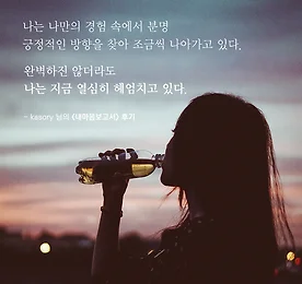 나는 분명 조금씩 앞으로 나아가고 있습니다 '나'를 진실로 마주하는 시간은 참 두렵고 어렵다.나는 이런 사람이고 싶어, 이런 사람일 거야,틀 안의 나를 연기하는 게 더 쉬울 때도 있으니까. 하지만 난 늘 내가 궁금하고알고 싶고 변화하고 싶고 또 머무르고 싶기에,그런 마음이 불끈불끈 솟아오르던 어느 날'내마음보고서'를 만났다. 자기성찰을 통한 여유로움과 성숙. 바보같이 같은 실수를 반복하고 겪어본 일들도 새로운 환경에서는 늘 처음같이 어렵지만, 그래도 쌓아왔던 자기성찰 안에서 좀 더 유동적이고 능숙하게 긍정적인 방향으로 변화하려는 노력. 나는 지금 열심히 헤엄치고 있다. - kasory 님의 후기 * 내마음보고서가 궁금하다면? www.mindprism.co.kr/Report 더보기 이전 1 ··· 296 297 298 299 300 301 302 ··· 1128 다음