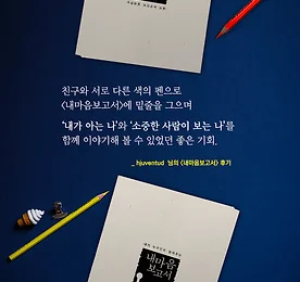 여백을 나의 생각과 경험으로 가득 채웠어요 나의 1부 심리특성 부분은674개의 단어들과 71개의 문장으로 이루어져 있다고 합니다.읽는 동안 저 숫자에 포함되지 않는 나만의 생각과 경험들이 여백을 차곡차곡 채워나갔어요. 책을 꼭꼭 씹어먹듯 하나하나 살펴보다 보니담백한 종류의 음식처럼 제 맛이 천천히 올라왔어요. 를 함께한 친구와 서로 다른 색의 펜으로 밑줄을 그으며'내가 아는 나'와 '친구가 아는 나'를 생각해볼 수 있었어요. 앞으로도 멈추고, 보고, 생각하고, 정리하고, 꺼내어서,'내가 덧대어 만든 구절'로 여백을 천천히 천천히 채워가볼게요. - hjuventud 님의 후기 * 내마음보고서가 궁금하다면? www.mindprism.co.kr #내마음보고서 #마인드프리즘 #심리검사 #심리분석 #친구 #여백 #생각 #경험 더보기 이전 1 ··· 303 304 305 306 307 308 309 ··· 1128 다음
