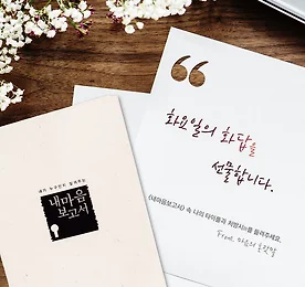 나만의 타이틀을 들려주세요, 화요일의 화답을 선물합니다 나의 심리특성을 통해 가 선물하는 처방시詩와 내 마음을 담은 나만의 타이틀을 들려주세요. 를 소지한 분이시라면 누구나 네이버 로그인 후 무료로 예약가능합니다. (아래 링크 클릭!) 마인드프리즘의 '마음의 혼잣말'이 나의 속 나의 처방시(詩)를 읽고 마음 이야기를 함께 나눕니다. 은 매주 화요일 마인드프리즘 공식 SNS를 통해 소개됩니다. 화요일의 화답 신청하기 (*1일 1명만 신청 가능) >> https://goo.gl/cLGwQX 더보기 이전 1 ··· 310 311 312 313 314 315 316 ··· 1128 다음