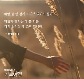 바람이 불 땐 잠시 쓰러져도 괜찮아 "처음 해보는 방식으로 생각을 정리해보자니 마음이 복잡해졌어요. 감정을 중심으로 기억을 다시 돌아보니 한 가지 사건으로도 내 마음이 이렇게 복잡다단했구나, 하는 생각이 들었어요. 하나의 마음이 화에서 미안함으로, 또 아쉬움으로 바뀐 것을 깨달으면서, 내 마음이 생명력을 가진 존재구나, 다시금 깨달았습니다. 바람이 불 때 잠시 쓰러져 있어도 괜찮구나, 그런 생각이 들었어요. 바람과 맞서는 데 쓸 힘을 다시 일어설 때 쓰면 되니까. 어떤 일들은 너무 애쓰지 않아도 괜찮다는 것. 줄야근으로 내팽개쳐 두었던 내 마음과 데이트할 시간을 만들 수 있어서 즐겁고 의미있는 시간이었습니다." - 내마음워크숍 참가자 후기 중 - *4월 21일 (오늘 6시 마감) >>https://goo.gl/QHvXJG **내마음보고서가.. 더보기 이전 1 ··· 327 328 329 330 331 332 333 ··· 1128 다음