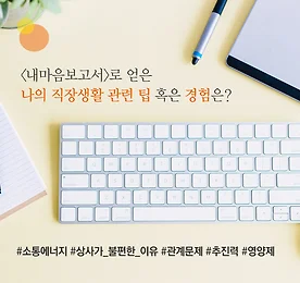 내마음보고서로 얻은 나의 직장생활 팁 "내가 가진 장점을 발견하고 추진력을 얻을 수 있었어요." "필요할 때마다 영양제처럼 '응원'과 '격려'를 만났어요." "소통에서 오해를 줄여서 에너지 누수가 방지되었습니다." "관계 문제를 이해하는데 필요한 도구로 잘 활용했습니다." "나의 상사가 불편한 이유를 찾았어요!" 로 만난 나의 직장생활 팁 보러가기 >> http://cafe.naver.com/holgaboon/4024 가 궁금하다면? www.mindprism.co.kr/report *** 향수 증정 이벤트 진행 중 >> http://www.mindprism.co.kr/Info/#notice 더보기 이전 1 ··· 362 363 364 365 366 367 368 ··· 1128 다음