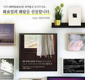 화요일의 화답을 보내드립니다 나의 속 '나만의 타이틀'을 들려주세요. 마음의 혼잣말이 '화요일의 화답'을 선물합니다 :) 가 선물한 내 마음을 닮은 시(詩)와 나의 타이틀을 예쁜 이미지에 담아, '마음의 혼잣말'이 보내는 나를 위한 메시지를 만나보세요. 은 매주 화요일 마인드프리즘 공식 SNS를 통해 소개되며, 를 직접 만난 분들이 들려주신 '나만의 타이틀'로 제작됩니다. 를 소지한 분이시라면 누구든 1월 3일 오전 11시부터 네이버예약을 통해 예약가능합니다. _ '화요일의_화답' 신청하기 >> https://goo.gl/ohNhYX _ 나만의 타이틀을 선물하는 가 궁금하다면 >> http://www.내마음보고서.kr 더보기 이전 1 ··· 369 370 371 372 373 374 375 ··· 1128 다음