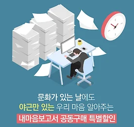 야근만 있는 내 마음, 괜찮은 걸까? 영화비가 조조보다 싸다는 문화가 있는 날, 혹시나 하는 마음에 힘들게 영화를 예매했다가도 역시나 하는 마음으로 취소버튼을 누르는 그 순간. 문화는 커녕 야근만 있는 우리 마음, 이대로 괜찮은 걸까요? 이렇게 쉴 틈 없이 달리기만 해도 괜찮은지, 사무실을 지키느라 내 소중한 사람들이 소홀히 느끼진 않을지, 하고 싶은 것이라곤 '푹 자는 것' 말곤 없는게 정상적인건지. 이런 내 마음 알아주는 야근동지와 함께 '내마음보고서 4인 공동구매 특별할인'으로 내 마음 만나고 돌보기를 시작해보세요. 네이버 스토어팜 '내마음보고서 홀가분가게'에서 언제나 만날 수 있습니다 :) 이벤트 바로가기 >> https://goo.gl/hYkCYs 더보기 이전 1 ··· 402 403 404 405 406 407 408 ··· 1128 다음