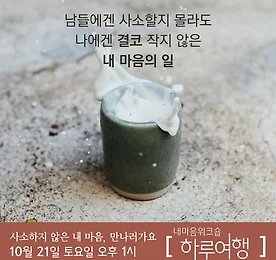 나에겐 결코 사소하지 않은 내 마음의 일 안에 스며있는 내 마음에 대한 결정적인 단서들을 찾아보고, 머물러도 보고, 연결해보기도 하는 . 너무나 중요했지만 순식간에 지나가 버린 그 때 그 감정들을 감정단어 블록과 표정주사위로 차근차근 차분히 생생하게 만나보기도 하고, 여전히 어렵고 낯설었던 나를 위한 심리처방전 속 '나의 시(詩)'를 여러 사람들과 함께 나누며 다채롭게 느껴볼 수 있는 시간. 이렇게 만나본 내 마음, 어떠셨나요? 그 마음을 마주한 나는 어때 보이나요? 남들에겐 사소해보일지 몰라도. 나에게는 결코 작지 않은 일, 바로 내 마음의 일이잖아요. 한번쯤 개운하게, 가볍게 털어내고 싶던 내 마음 속 일들. 함께 를 지도삼아 여행해보는 건 어때요? 내마음워크숍-하루여행, 10월21일 >> https://goo.gl/RG285j 더보기 이전 1 ··· 412 413 414 415 416 417 418 ··· 1128 다음
