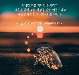 퇴직금으로 떠난 여행과 내마음보고서 미국 여행 끝에 돌아온 나를 기다린 '내마음보고서'. 나의 심리코드들을 엮어서 보니 사표를 마음에 품고 참으며 살아온 나의 회사생활이 보였다. 나의 지나간 것들을 원망도 해보고 탓도 해보고 그리워도 해봤지만 부정할 수는 없었다. 지나간 것은 지나간 일이라고, 다음을 위해 겪는 성장통 같은 일들이라고 웃으면서 말할 수 있는 힘을 얻었다. 내마음보고서 속 '심리처방전'이 이시영의 이란 시를 빌려 '두고온 것들이 빛나는 때가 있다'고 전한 것처럼. 그 어떤 문장으로도 나 자신에 대해 온전히 쓸 수 없던 나에게 '너는 이런 사람이란다'라고 일러준 내마음보고서. 그 덕분에 다음을 향한 발걸음이 조금 더 가벼워진 것 같다. - yogorism(deli****)님의 내마음보고서 후기 후기 더 보러가기 https://.. 더보기 이전 1 ··· 413 414 415 416 417 418 419 ··· 1128 다음