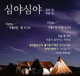 딱 오늘 밤만 만날 수 있는 특별한 이벤트! 오늘 밤이 바로 그날 '밤'! 9월6일 밤9시부터 다음날 새벽 6시까지, 단 하룻밤만 만날 수 있는 선착순 한정수량 이벤트 '심야심야'를 단 9시간동안만 만날 수 있어요. 깊은 밤, 마음을 움직이는 하룻밤! 마음이 말랑말랑해진 그 순간 놓치지 않고, 고민고민하느라 다음으로 미루지 말고, 내 마음 위한 시간은 꼭꼭 챙기세요! 내 마음을 위한 행운의 시간, 놓치지 마세요 :) 심야심야 이벤트 바로가기 >> goo.gl/pZhhqC 더보기 이전 1 ··· 426 427 428 429 430 431 432 ··· 1128 다음