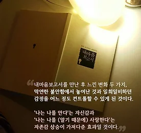 내 안의 나는 그동안 어떻게 지내고 있었을까 누구에게도 들려준 적 없는 시간들을 마인드프리즘에 조심스레 털어놓고 보고서를 기다리면서 설렘 반 두려움 반, 내 안의 나는 그동안 어떻게 지내고 있었던 거야, 어서 와, 학수고대했더랬지요. 보고서에서 가이드한 대로 여러 차례 마음을 곱씹어 읽으며 그간 알던 제 모습에 대한 확신과 몰랐던 모습에 대한 깨달음을 정리해나갔습니다. 보고서를 읽고 마음을 점검한 후 제게는 두 가지 큰 변화가 찾아왔습니다. 첫째는, 이유를 알 수 없는 불안함에서 놓여난 것이고 둘째는, 일희일비하던 감정을 어느 정도 컨트롤할 수 있게 된 것입니다. '나는 나를 안다'는 자신감과 '나는 나를 (알기 때문에) 사랑한다'는 자존감의 동반상승이 우리 일상에서 어떤 역할을 해내는지 다시금 통감했어요. -고라니님의 후기 중 http://caf.. 더보기 이전 1 ··· 531 532 533 534 535 536 537 ··· 1128 다음