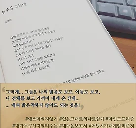 있는 그대로의 나를 만나는 시간 내마음을 논리적으로 정리해 놓은 듯해 눈물바람보단 ‘아~!!’하는 심정으로 읽어 내려가고 있는 중이다. 그러다 만난 처방시에서 내마음 토닥토닥하다 괜히 뭉클뭉클... . . 그러게~!! 나는 나의 밝음 때문에 누군가가 나를 좋아하고 나에게 다가온다고 생각하지만... 그들은 나의 밝음도 보고, 어둠도 보고, 나 전체를 보고 기꺼이 내게 온 건데... 그걸 나만 여태 몰랐구나! . 애써 밝은척하지 않아도 되는 것을! http://cafe.naver.com/holgaboon/3678 ------------------------ 있는 그대로의 나를 만나는 시간 http://www.mindprism.co.kr/Report 더보기 이전 1 ··· 544 545 546 547 548 549 550 ··· 1128 다음