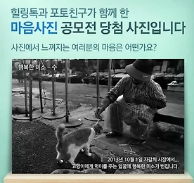 [발표] 마음사진 공모전 이벤트 당첨사진 - '행복한 미소' 사진을 보내주신 수님께는 을 보내 드립니다. 붉게 물든 가을 하늘처럼 엄마를 향한 나의 사랑도 타오릅니다! _ Joy yun제가 과외하는 9살 친구가 엄마랑 아빠랑 싸우고 나서 엄마랑 이모집에서 자고 왔나봐요. 수업시간에 있었던 일을 다 이야기 해주더라구요^^ 그러면서 아이의 마음 한켠에 어른들이 모르는 공허함과 슬플이 보였지요. 그래서 엄마에게 보내는 위로와 사랑의 사진을 직어보자 해서 수업 마치고 나왔는데 하늘의 노을이 너무나 아름다웠습니다. 부산 자갈치에서 홀로 사진찍던중 제 눈에 들어온 할아버지였습니다. _ 이병재 해질녘 몽산포 _ 이이랑희삶은 언제나 마음 한켠에 외로움을 키운다. 결국 그것이 우리를 더 단단하게 하고,역설적이게도 누군가를 사랑하게 하며,감사하게 하기 때문이다... 더보기 이전 1 ··· 812 813 814 815 816 817 818 ··· 1128 다음