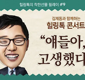 [이벤트] 김제동과 함께하는 힐링톡 콘서트_ 수능편 소감 이벤트 2014학년도 수능 응시 청소년 여러분 80명과 함께 했던‘김제동과 함께하는 힐링톡 콘서트’ 현장입니다. [이벤트 안내]‘김제동과 함께하는 힐링톡 콘서트’에 참여한 후 느낀 감정이나 기분,그리고 여러 가지 생각들,또는 김제동 아저씨에게 하고 싶은 말,인상 깊었던 말씀 등…참여 후 소감을 댓글로 남겨주세요. 댓글 참여자 중 2명에게 를 선물로 드립니다. * 참여 방법- 본 이벤트 게시물에 ‘참여 소감’ 또는 ‘김제동 아저씨에게 하고 싶은 말’을 댓글로 남깁니다.- 댓글 작성 시 본명으로 기입해주셔야 당첨시 본인확인이 가능합니다. * 참여 기간 : 12/11(수)까지 * 발표 : 12/12(목) 당첨자에 한하여 개별 연락 * 힐링톡 콘서트 현장 사진 및 동영상 더보기 이전 1 ··· 845 846 847 848 849 850 851 ··· 1128 다음