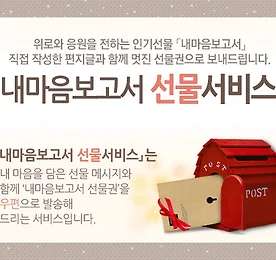 [이벤트] '내마음보고서 선물서비스' (종료) 위로와 응원을 전하는 인기선물 「내마음보고서」직접 작성한 편지글과 함께 멋진 선물권으로 보내드립니다.「내마음보고서 선물서비스」 *「내마음보고서 선물서비스」는…내 마음을 담아 직접 작성한 선물 메시지와 함께,‘내마음보고서 선물권’을 우편으로 발송해드리는 서비스입니다. * 「내마음보고서 선물서비스」를 이용하려면…① 선물할 ‘내마음보고서 선물쿠폰’을 구매합니다.- 마인드프리즘 홈페이지 및 카카오톡 선물하기에서 구매할 수 있습니다. 마인드프리즘 홈페이지에서 구매하기 바로가기 카카오톡 선물하기에서 구매하기(스마트폰 전용) 바로가기 ② 마인드프리즘 홈페이지에서 ‘선물서비스 신청’하면 됩니다.- ‘문의하기’에서 ‘선물서비스 신청하기’를 선택 후 신청할 수 있습니다. 선물서비스 신청하기 바로가기 더보기 이전 1 ··· 870 871 872 873 874 875 876 ··· 1128 다음