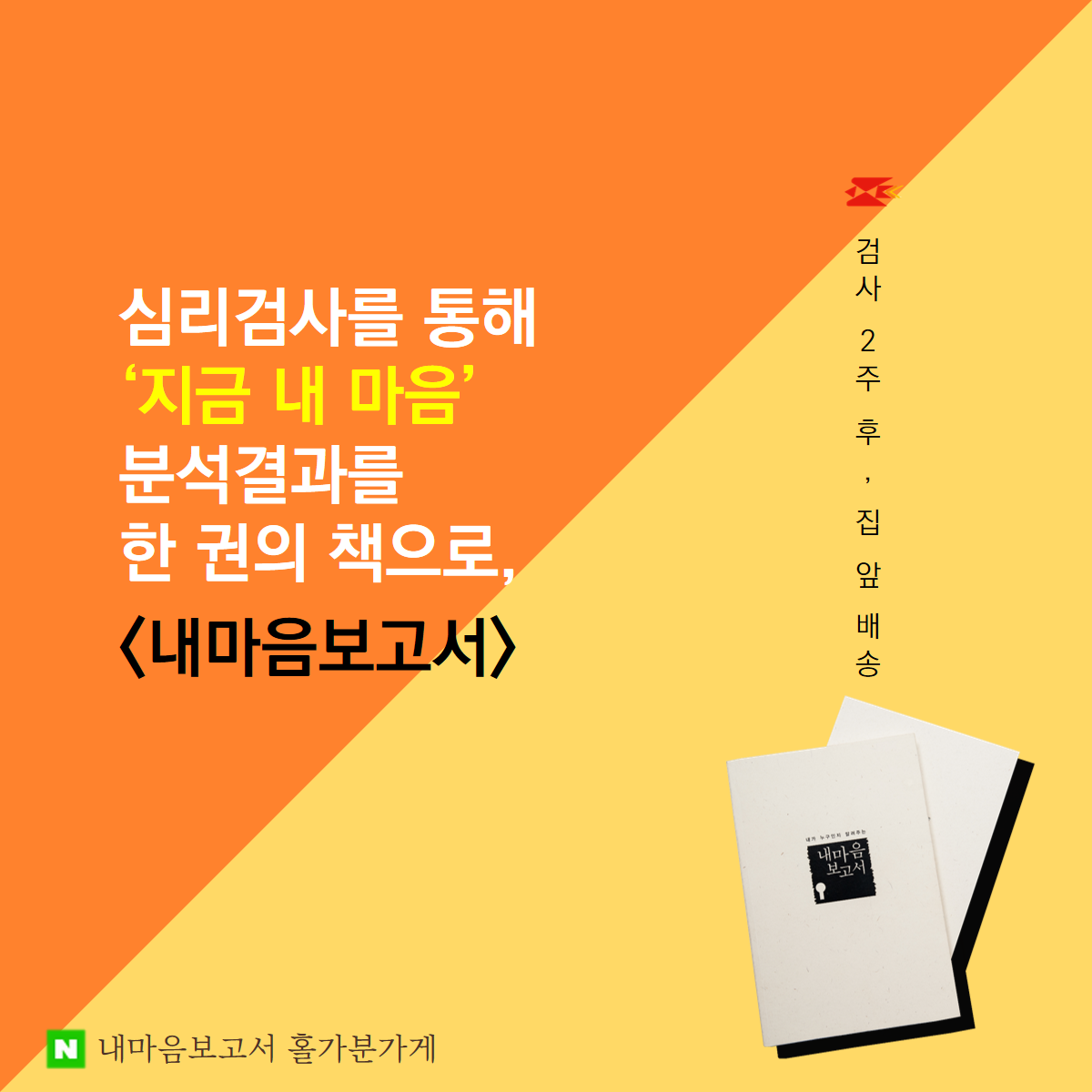 <내마음보고서>는 과학적으로 검증된 심리검사를 통해 내가 누구인지 알려주는 개인맞춤형 심리보고서로, 나의 심리분석 결과를 한 권의 책으로 담아 보내드립니다.