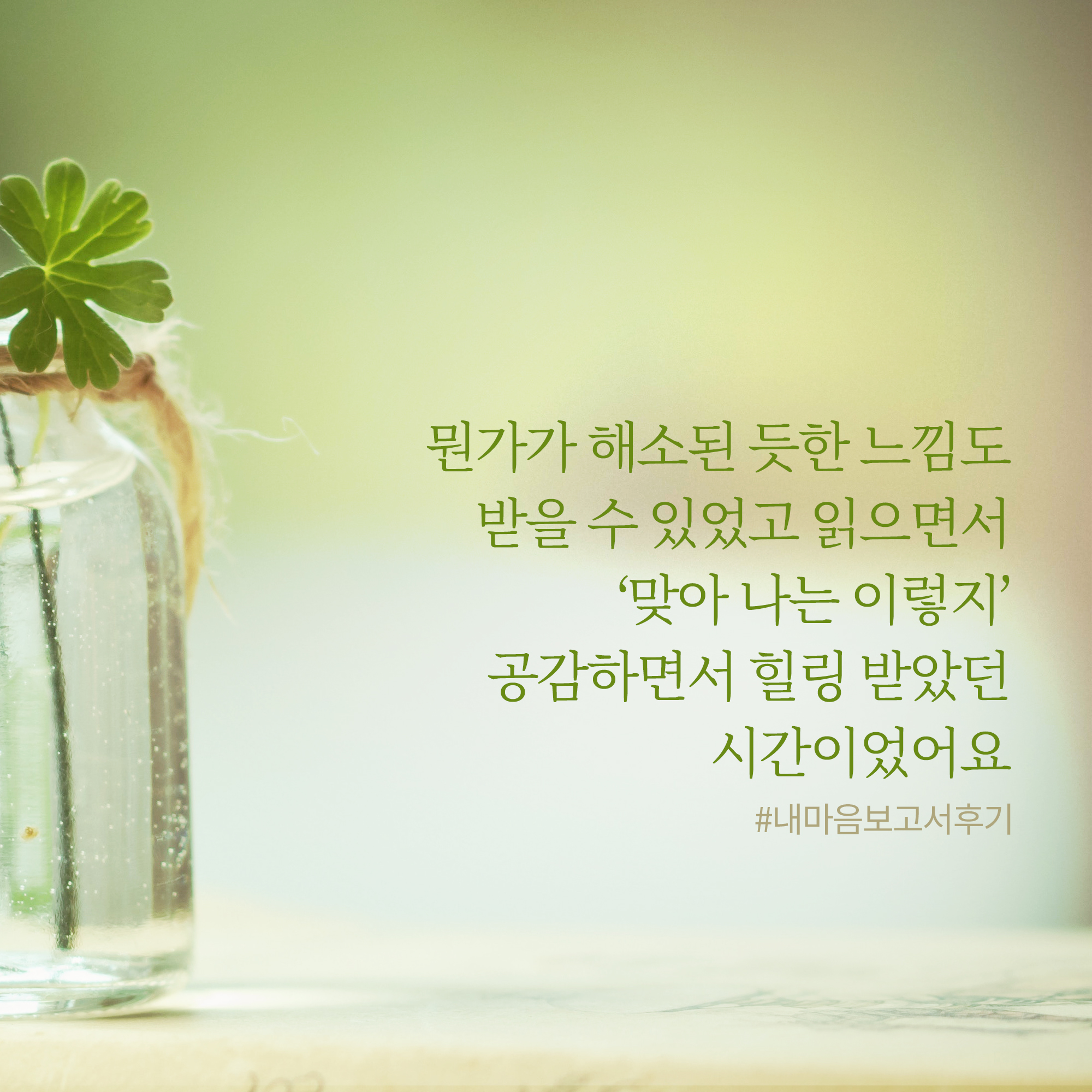 저도 몰랐던 저의 심리적인 부분들을 명확히 집어내주니 뭔가가 해소된 듯한 느낌도 받을 수 있었고 읽으면서 '맞아 나는 이렇지' 공감하면서 힐링 받았던 시간이었어요